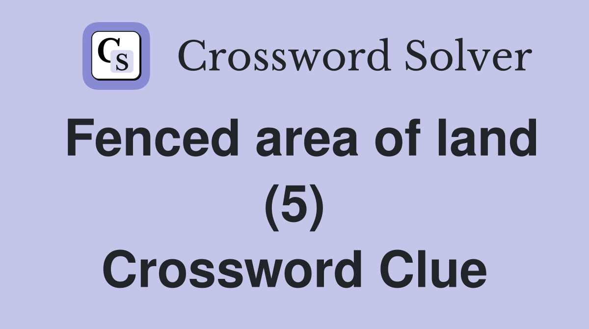 Fenced area of land (5) Crossword Clue Answers Crossword Solver