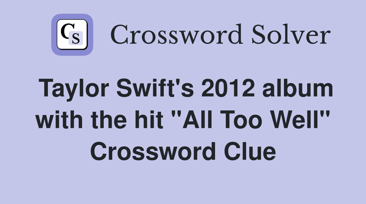 Taylor Swift #39 s 2012 album with the hit quot All Too Well quot Crossword Clue