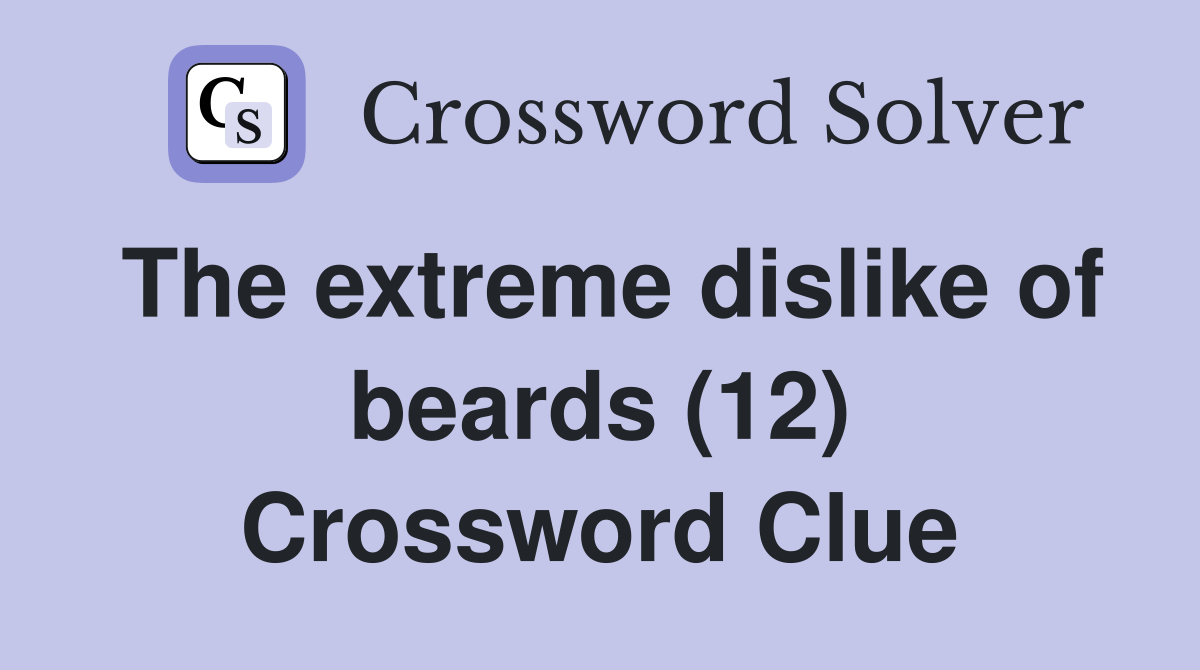 The extreme dislike of beards (12) Crossword Clue Answers Crossword