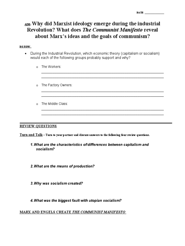 Marx and Engels Develop Communism Worksheet Answer Key PDF
