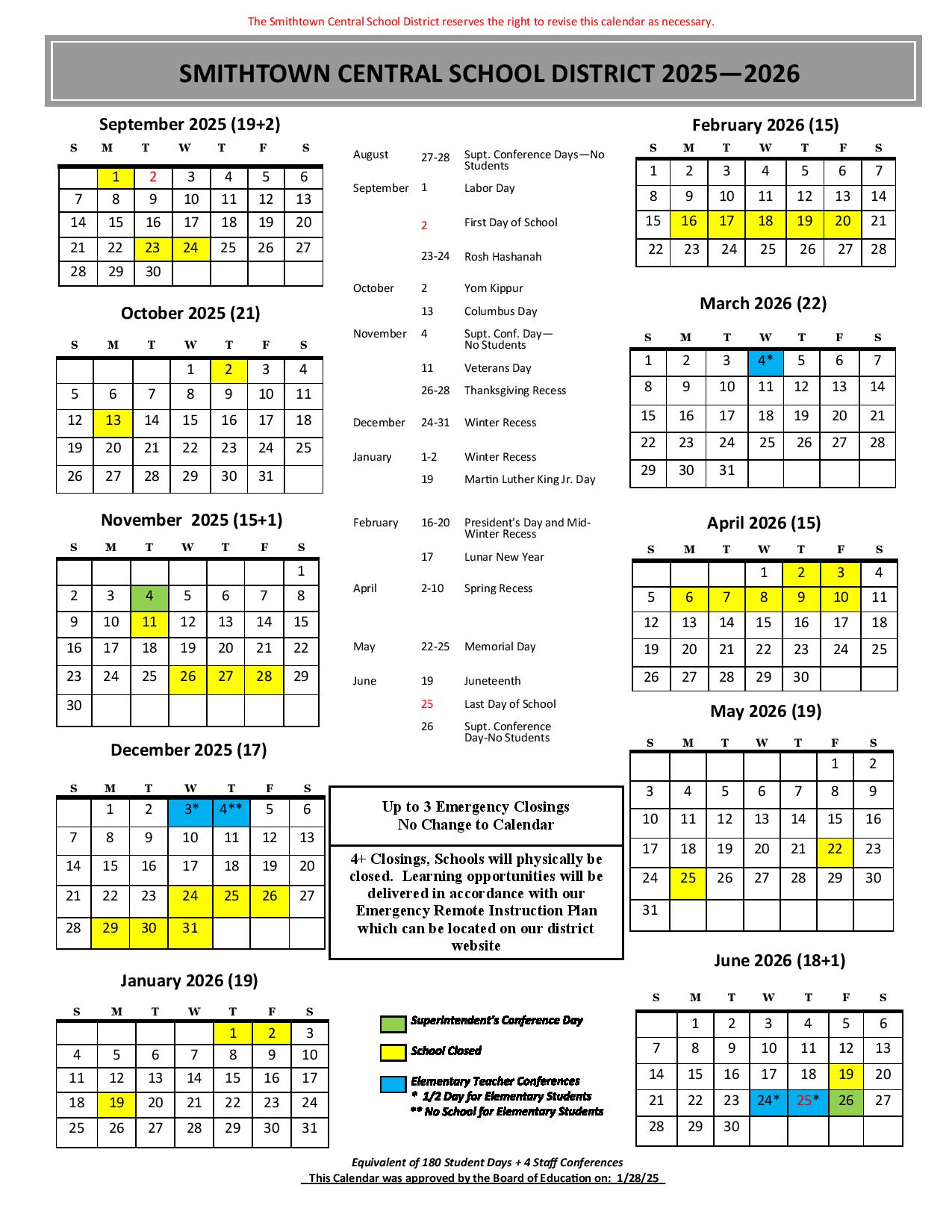 Smithtown Central UFSD Calendar 25 26 PDF EduCounty