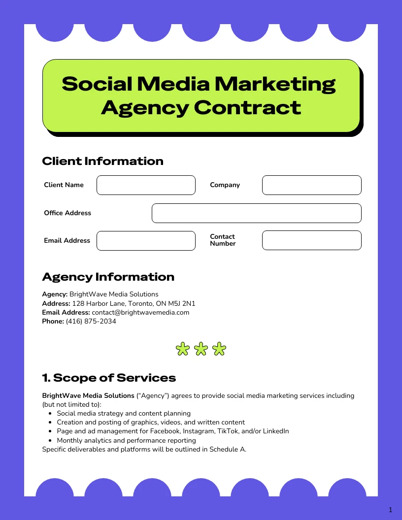 Free Social Media Marketing Contract Template