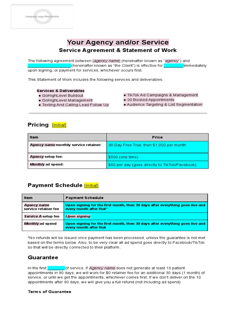 SMMA Contract Template Your Agency and/or Service Service Agreement