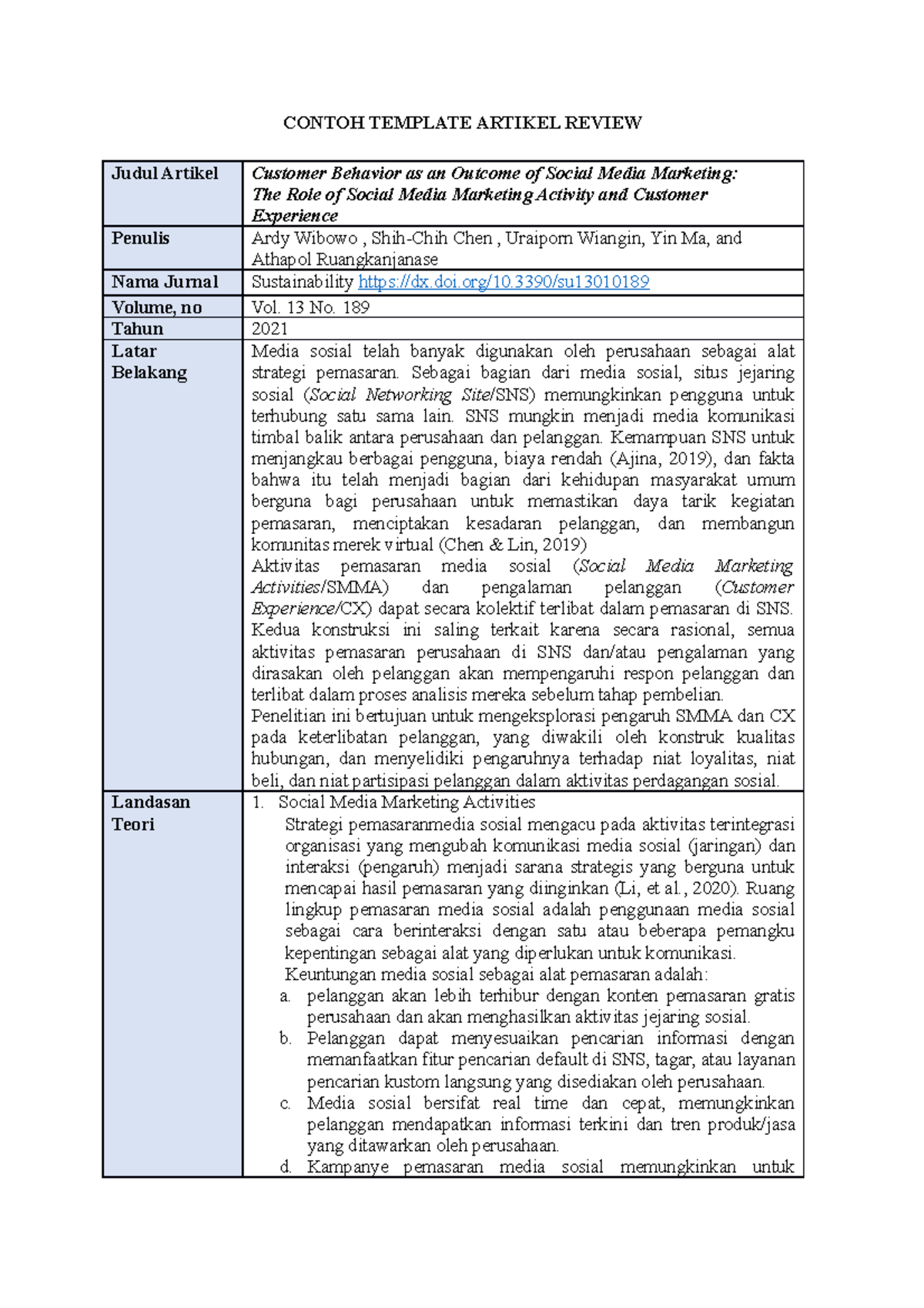 Template Review Artikel: Pengaruh SMMA dan CX pada Keterlibatan