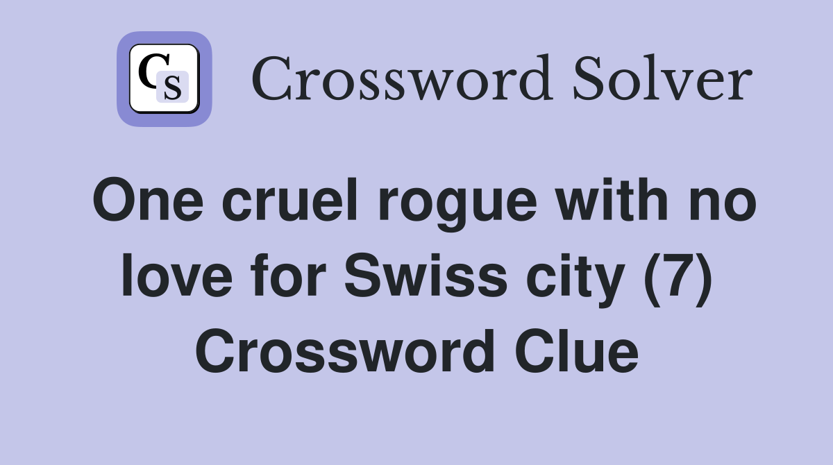One cruel rogue with no love for Swiss city (7) Crossword Clue