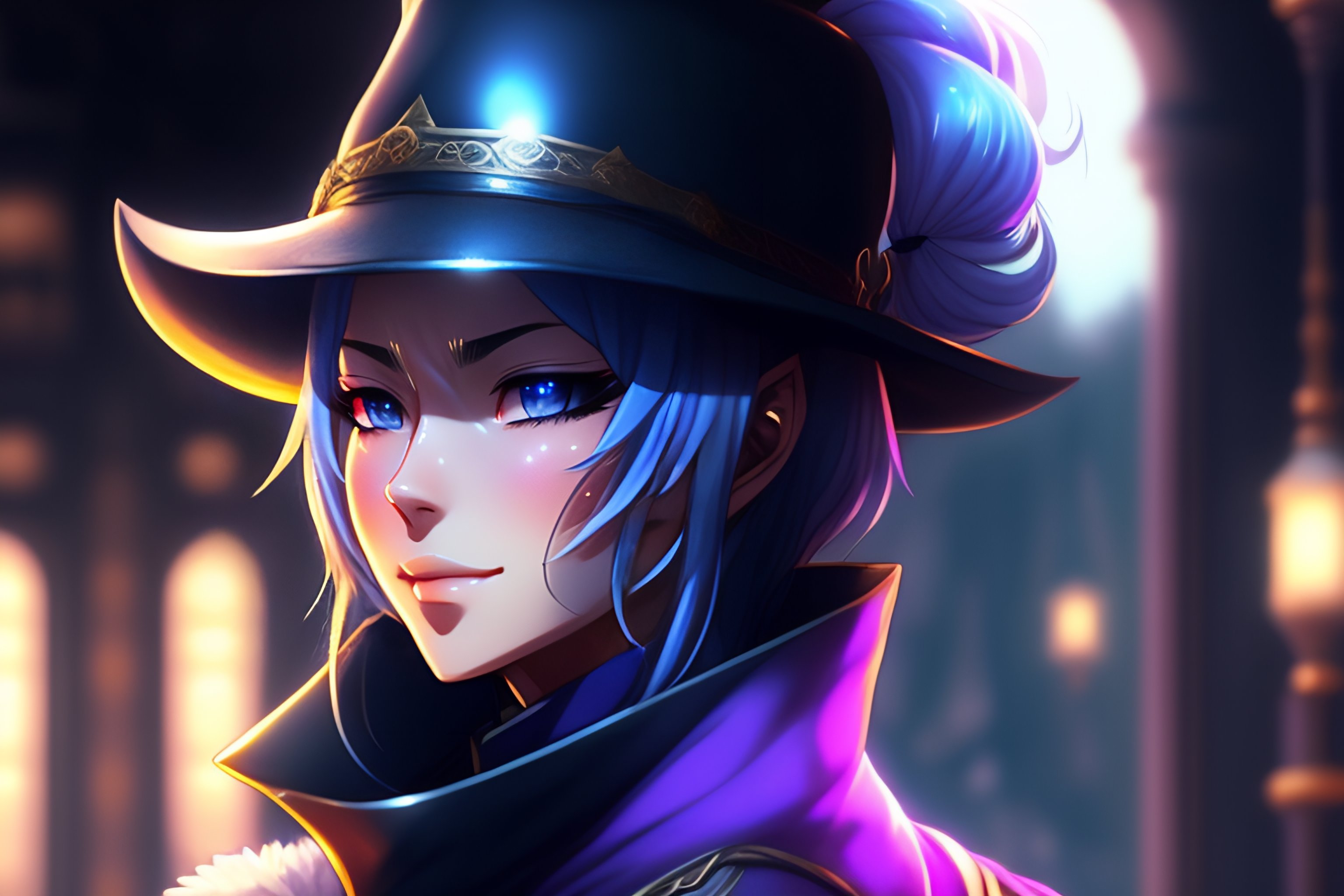 Lexica Anime mage black mage hat silver hair High quality high
