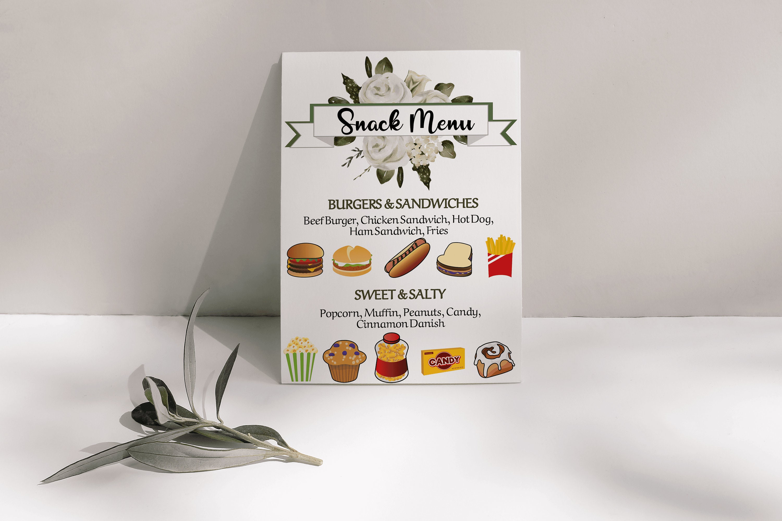 Editable Snack Menu Template Floral Snack Bar Wedding Snack Menu
