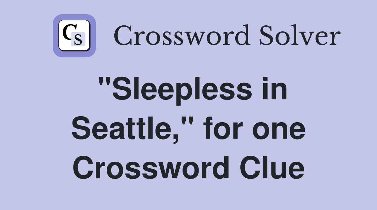 quot Sleepless in Seattle quot for one Crossword Clue Answers Crossword Solver
