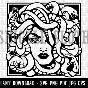 Snake Haired Gorgon Medusa Greek Myth Clipart Instant Digital Download