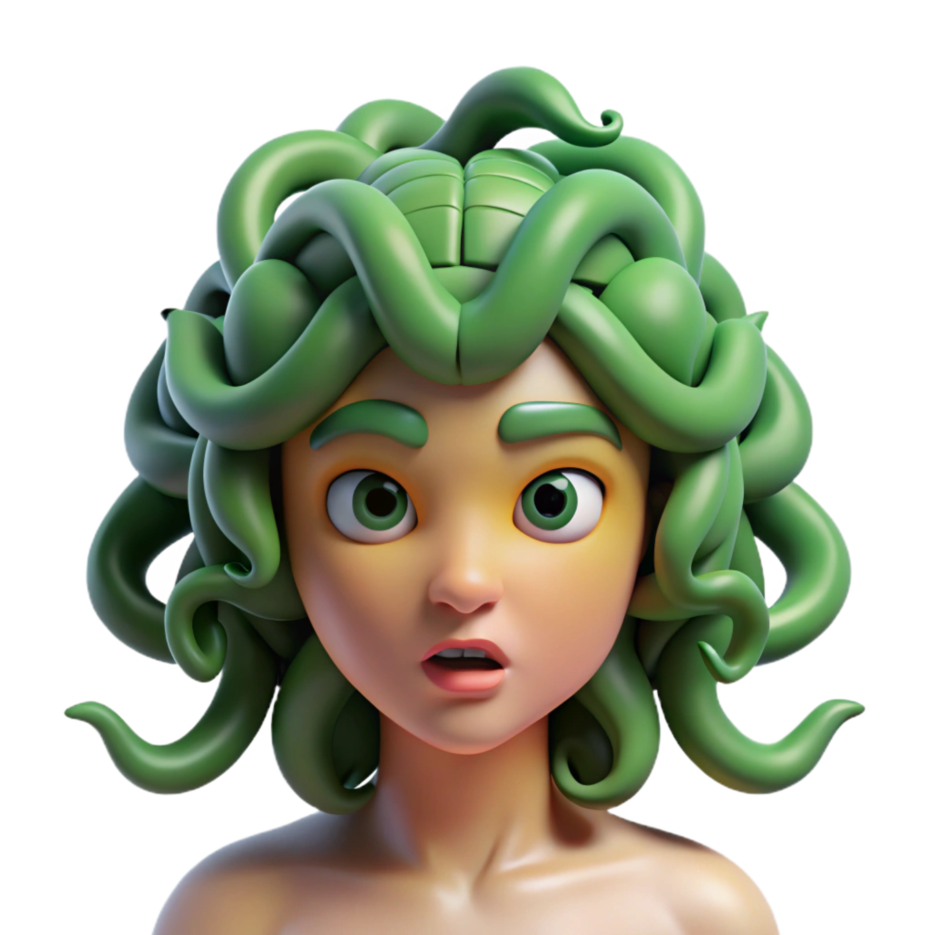 extraordinary traditional Medusa snake haired Gorgon terrifying gaze
