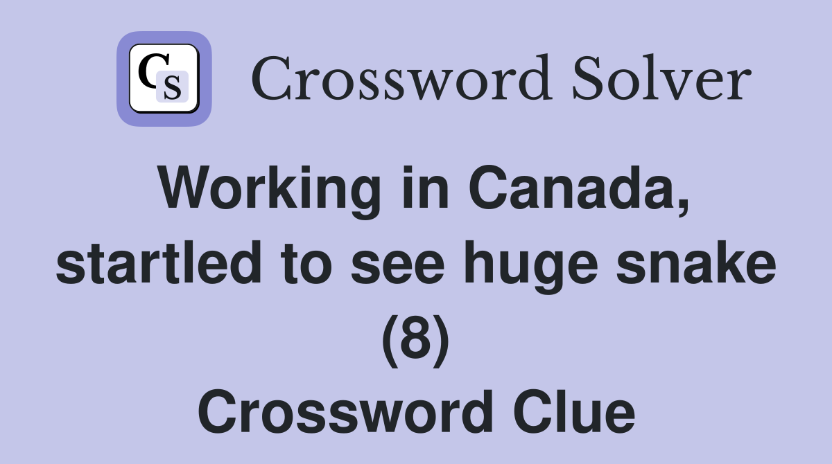 Working in Canada startled to see huge snake (8) Crossword Clue