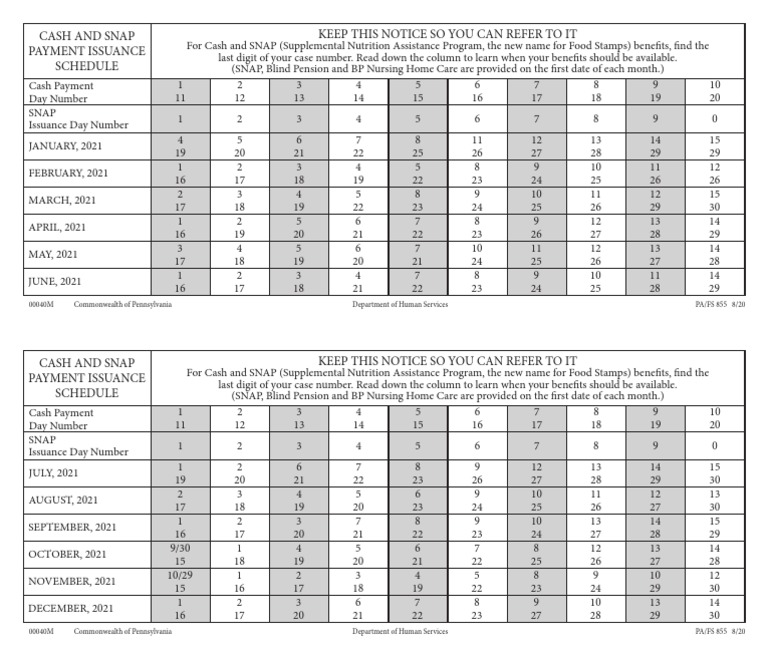 Cash and SNAP Benefit Payment Issuance Schedule: A Guide to