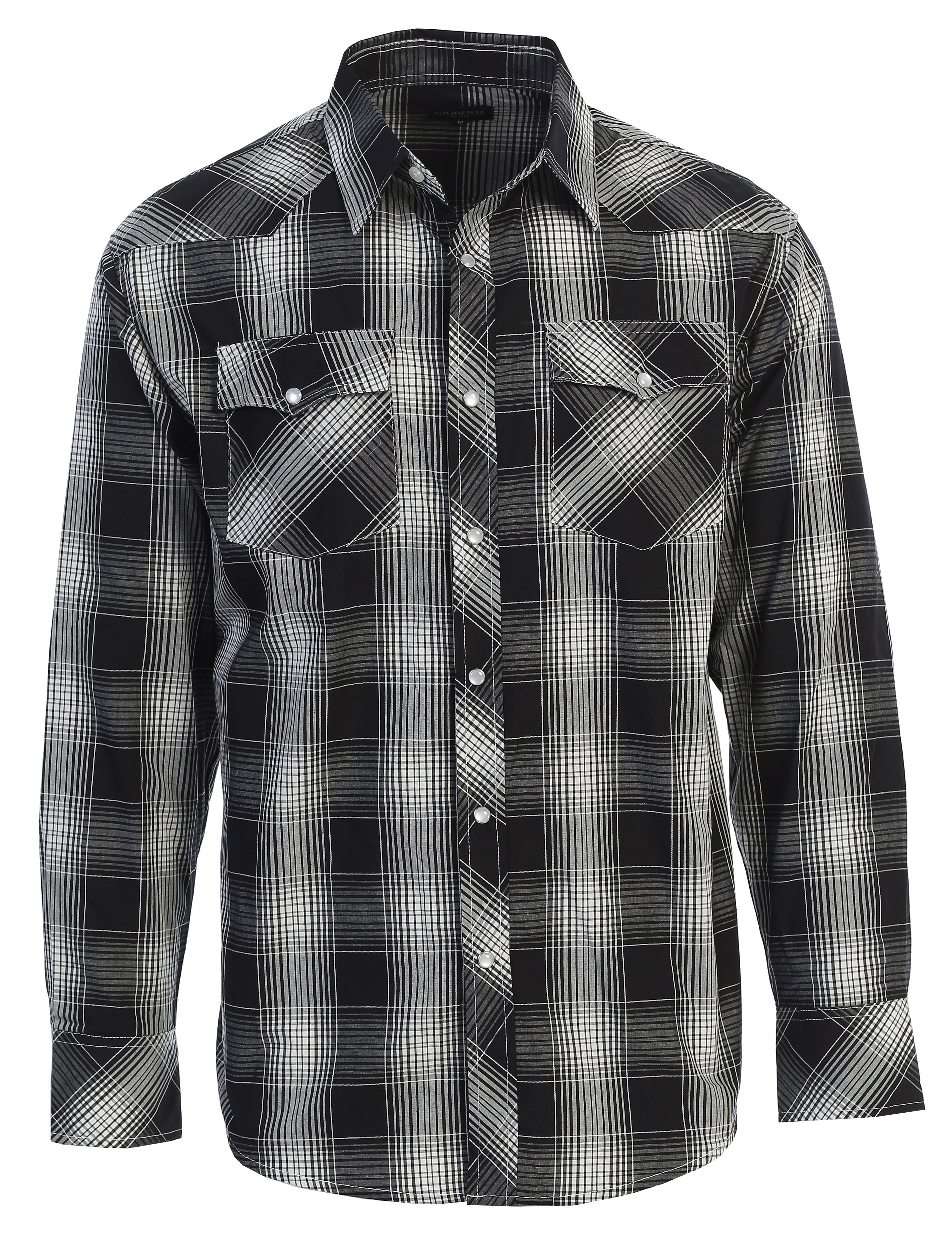 Gioberti Men #39 s Western Plaid Long Sleeve Shirt Pearl Snap Black/White