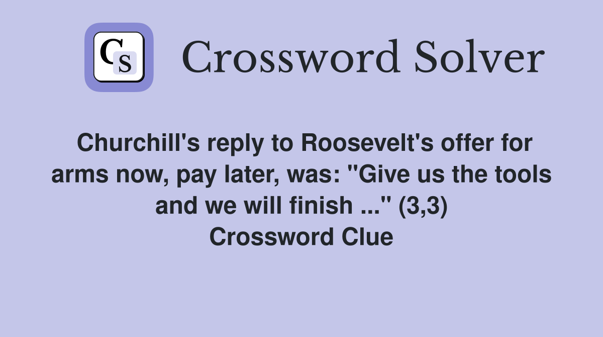Churchill #39 s reply to Roosevelt #39 s offer for arms now pay later was