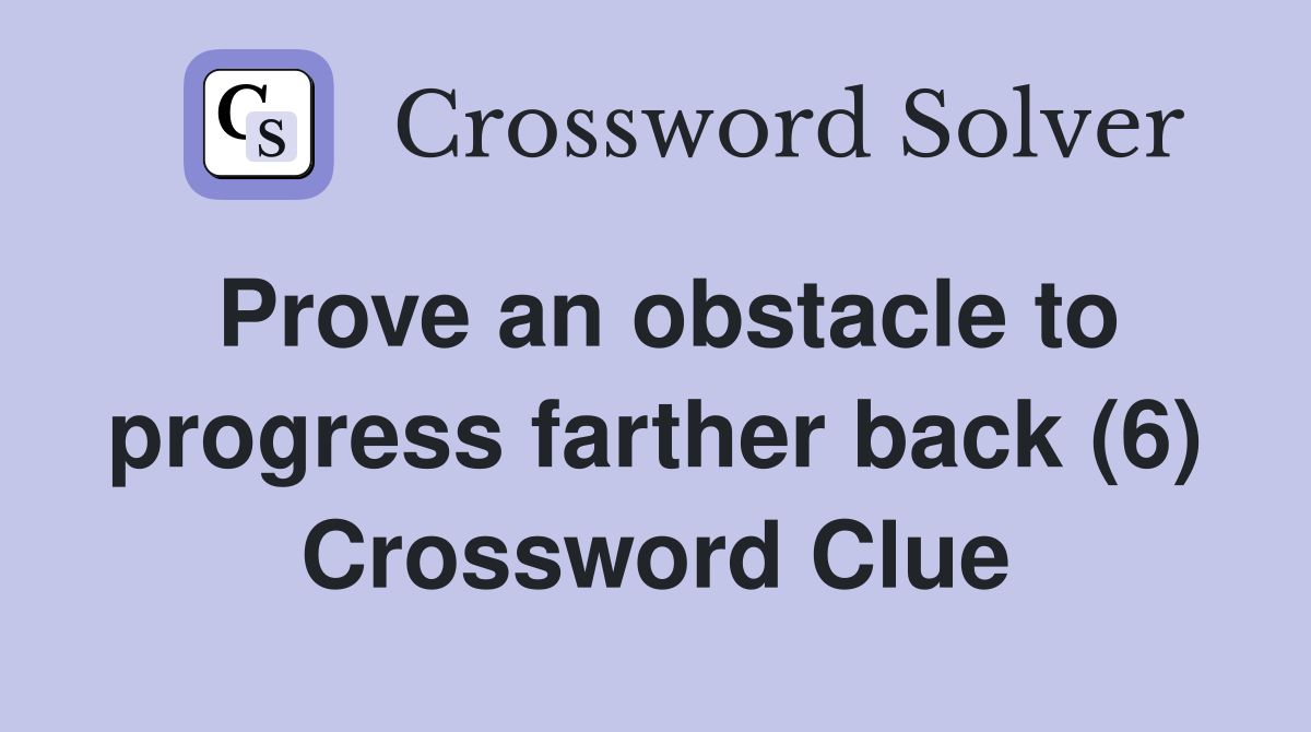 Prove an obstacle to progress farther back (6) Crossword Clue Answers