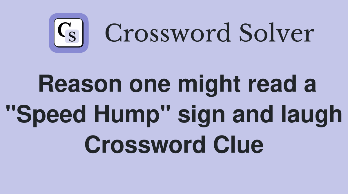 Reason one might read a quot Speed Hump quot sign and laugh Crossword Clue