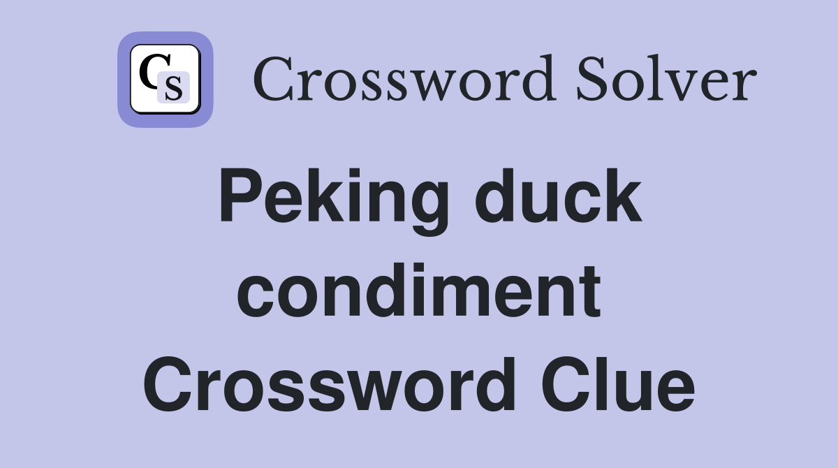 Peking duck condiment Crossword Clue Answers Crossword Solver