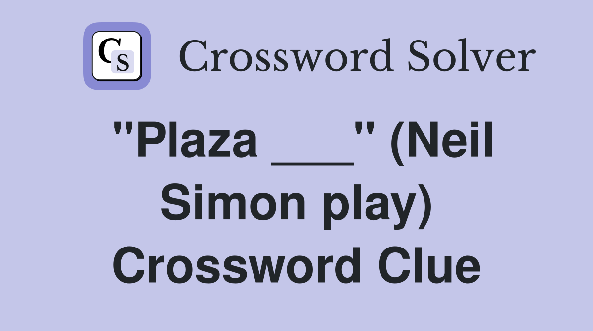 quot Plaza quot (Neil Simon play) Crossword Clue Answers Crossword Solver