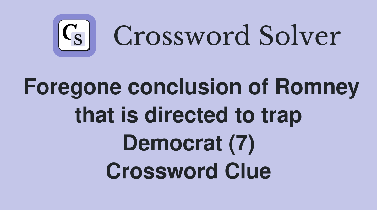 Foregone conclusion of Romney that is directed to trap Democrat (7