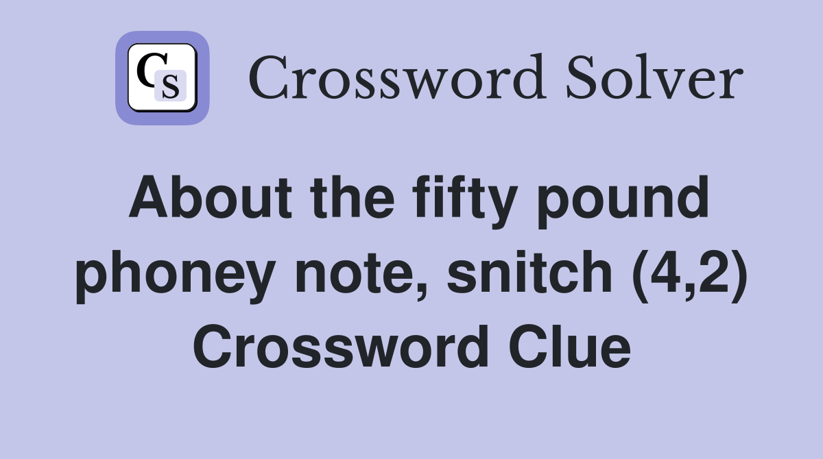About the fifty pound phoney note snitch (4 2) Crossword Clue