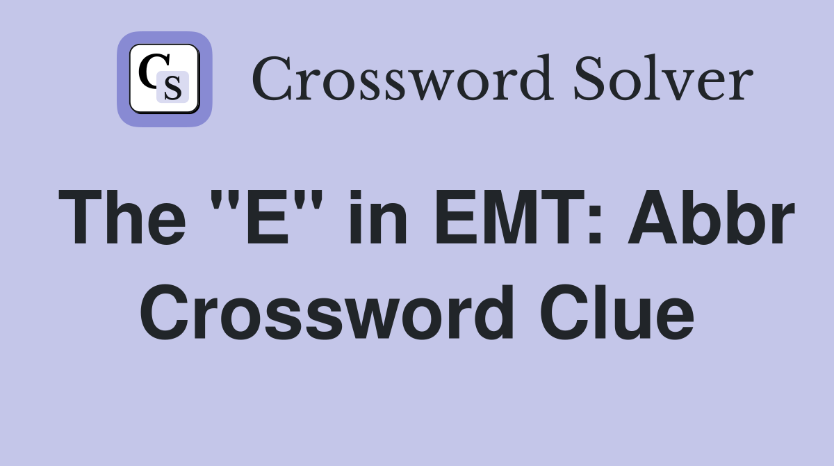 The quot E quot in EMT: Abbr Crossword Clue Answers Crossword Solver