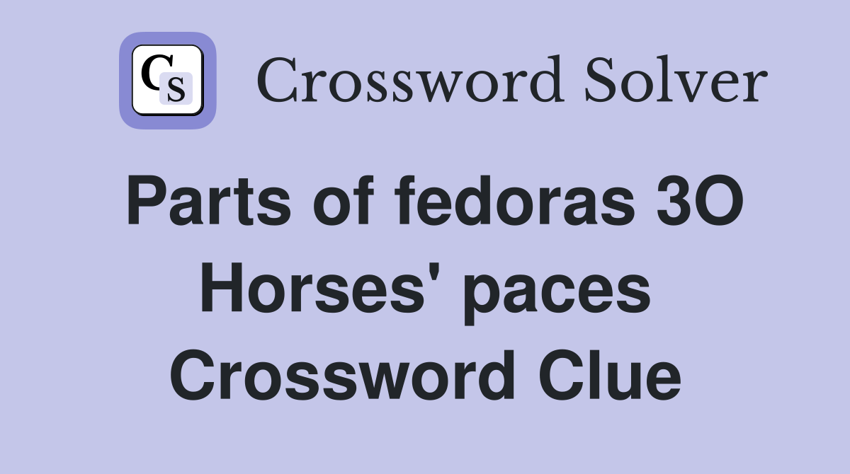Parts of fedoras 3O Horses #39 paces Crossword Clue Answers Crossword