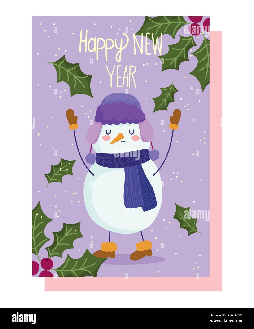happy new year 2021 snowman with hat scarf and boots decoration card