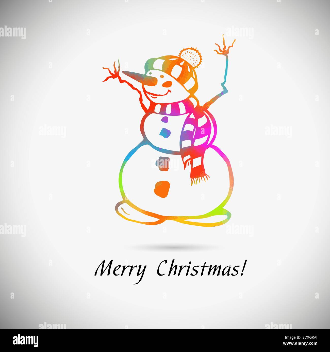 snowman multicolored Merry Christmas and Happy New Year Mixed media