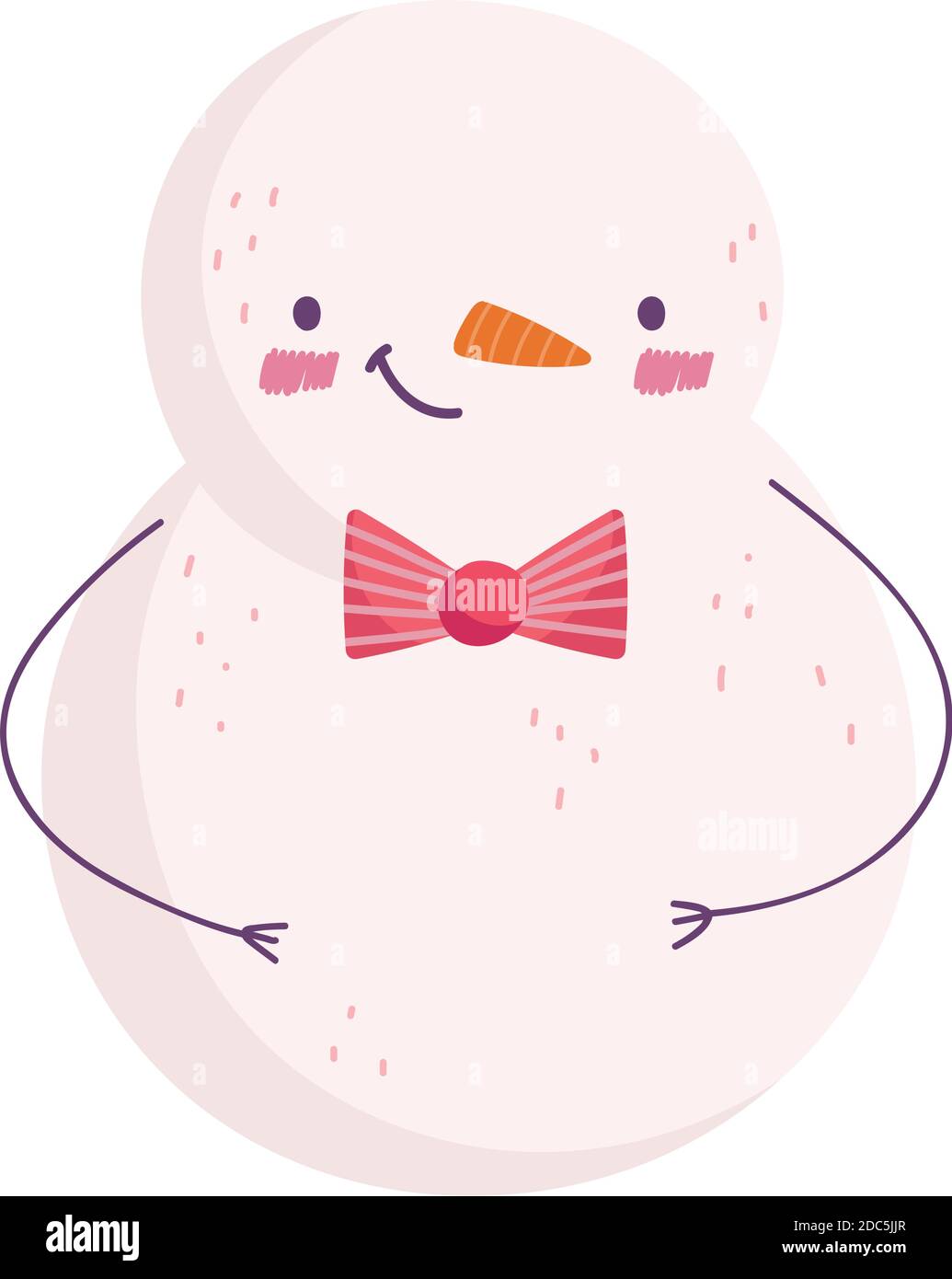 Snowman pink cheek Santa claus hat red scarf and snowflakes Cute