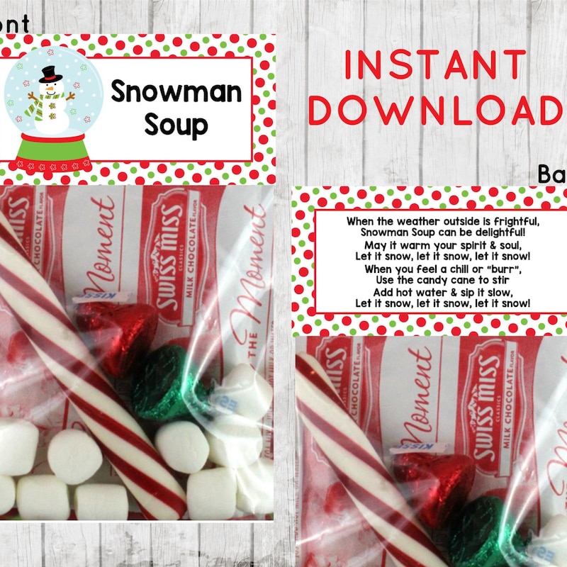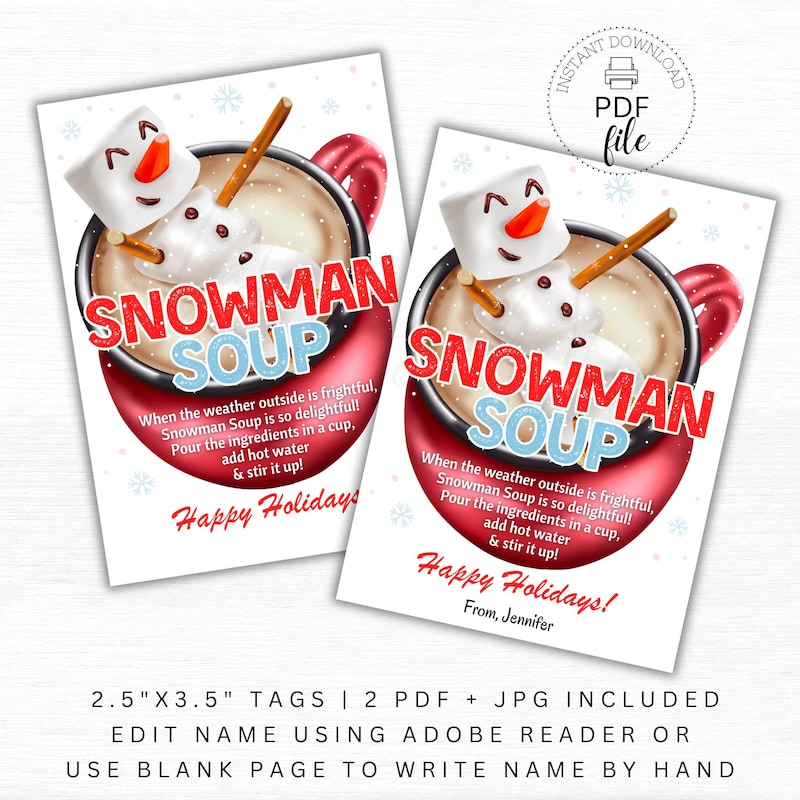 Snowman Soup Favor Tag Printable File instant Download Snowman Soup