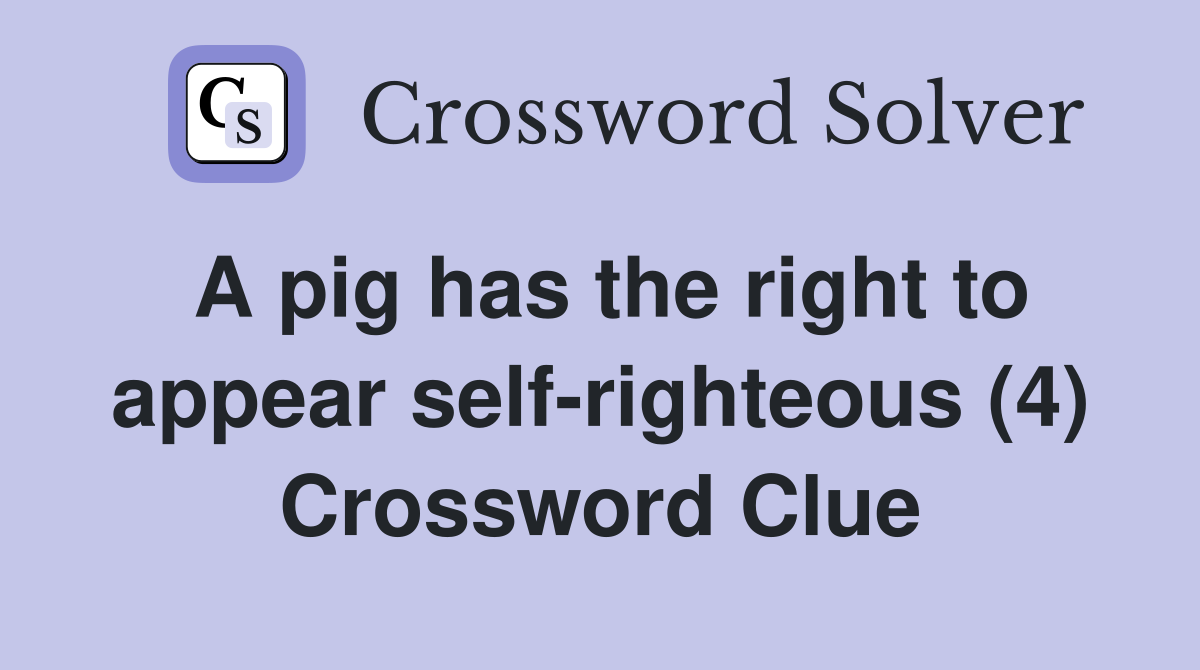 A pig has the right to appear self righteous (4) Crossword Clue