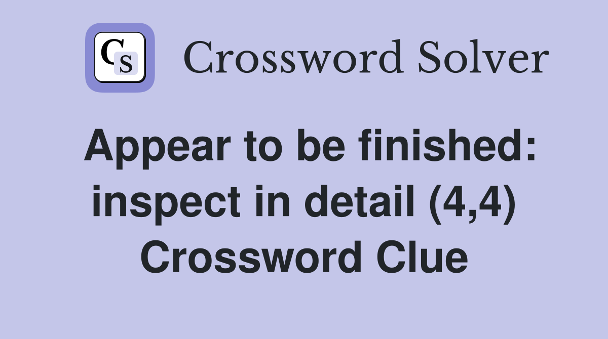 Appear to be finished: inspect in detail (4 4) Crossword Clue Answers