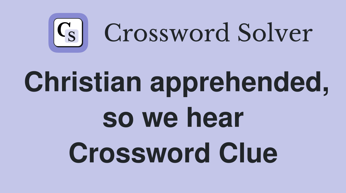 Christian apprehended so we hear Crossword Clue Answers Crossword