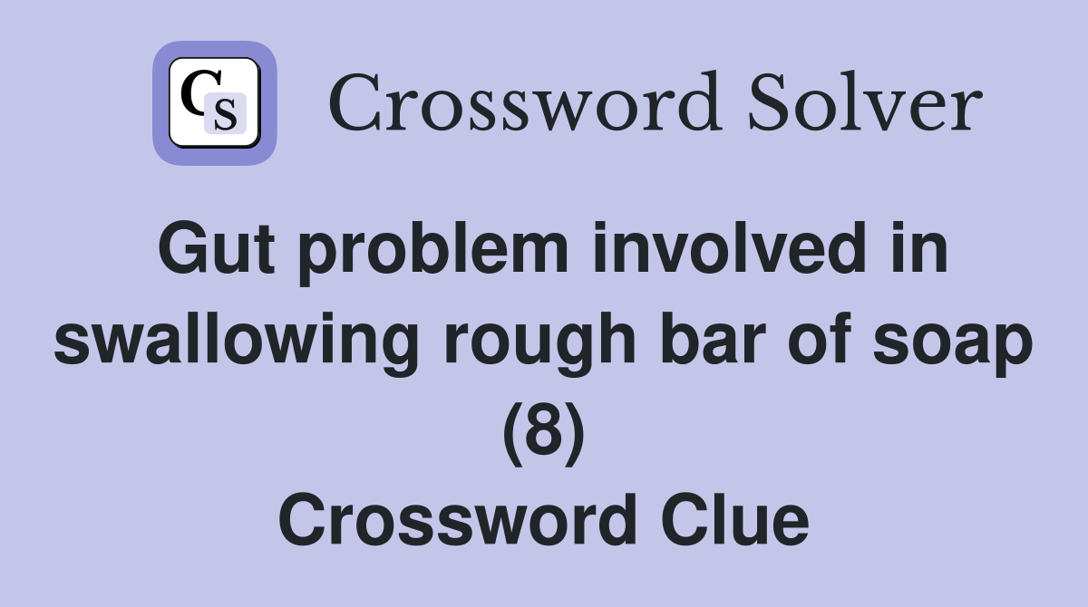 Gut problem involved in swallowing rough bar of soap (8) Crossword
