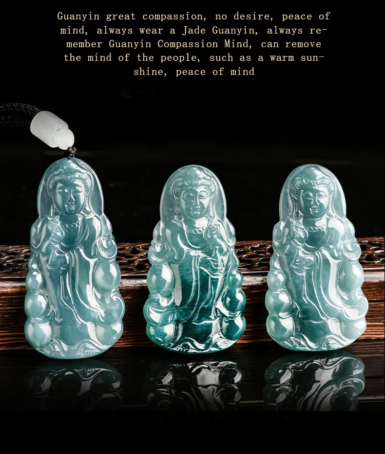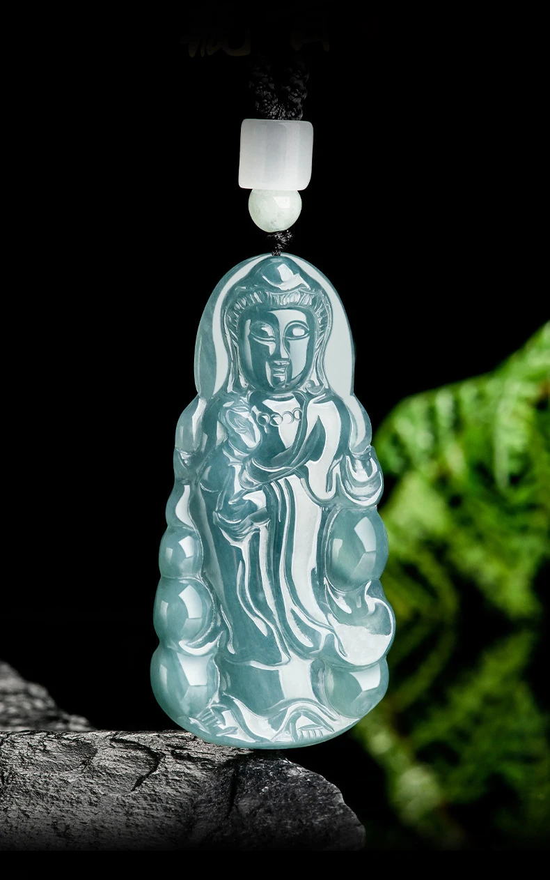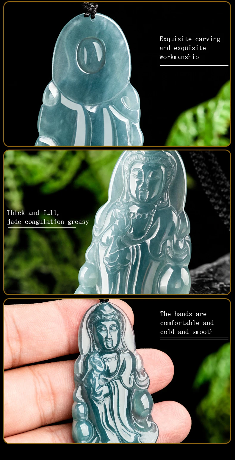 Natural Jadeite Avalokiteshvara Jade Pendant Blue Water Kind of Jadeite