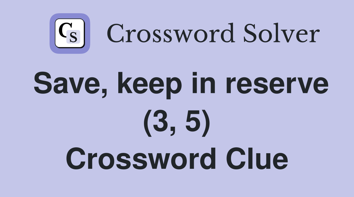 Save keep in reserve (3 5) Crossword Clue Answers Crossword Solver