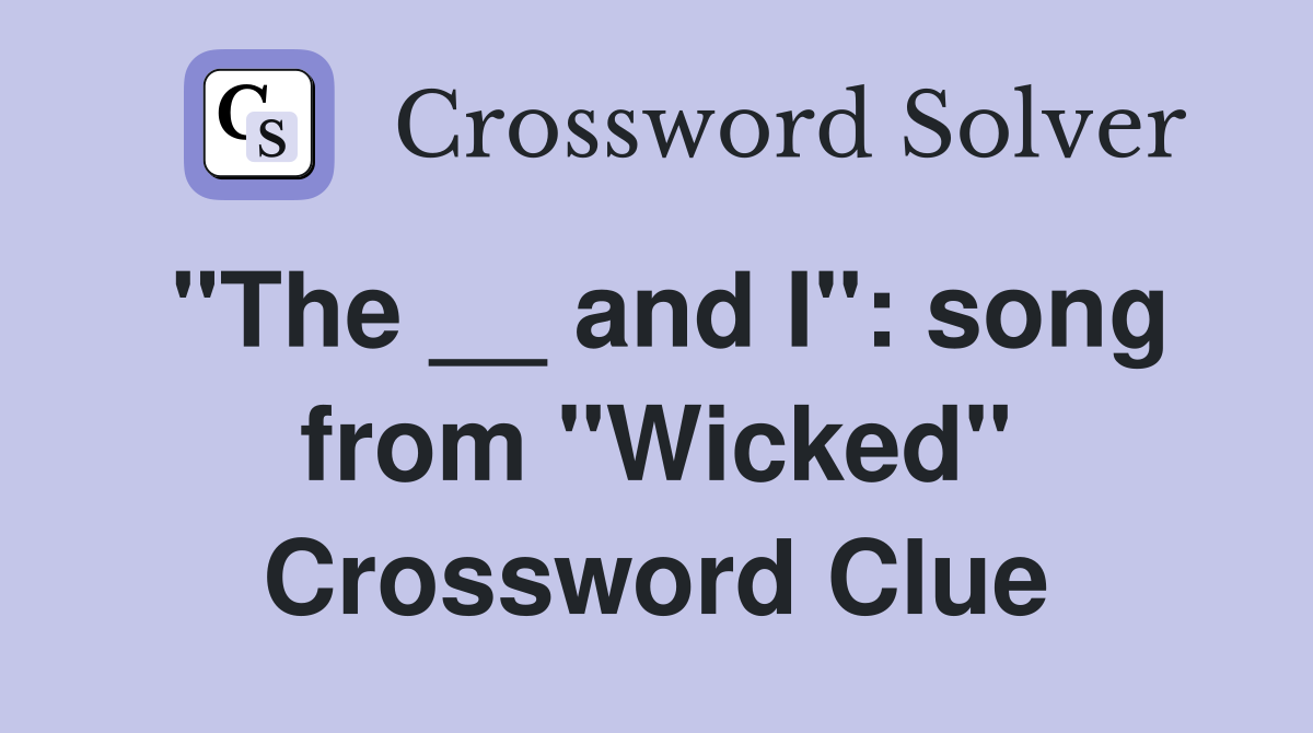 quot The and I quot : song from quot Wicked quot Crossword Clue Answers Crossword