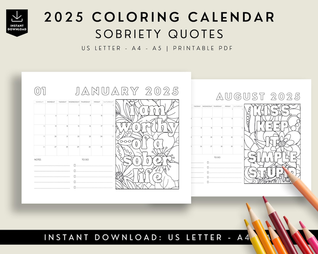 Sobriety Calendar 2024 MonthlyColoring Pages Sober Quotes