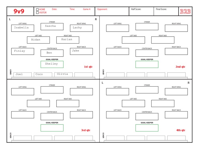 Soccer Lineup Sheet Form Soccer Soccer coaching Soccer referee