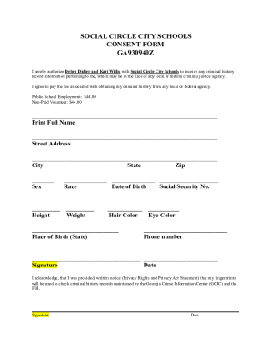 Fillable Online social circle city schools consent form ga930940z Fax
