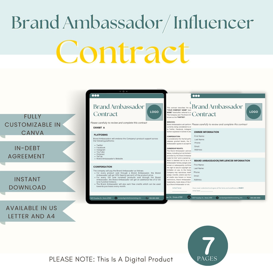 Brand Ambassador Contract// Brand Ambassador Agreement// Etsy in 2022