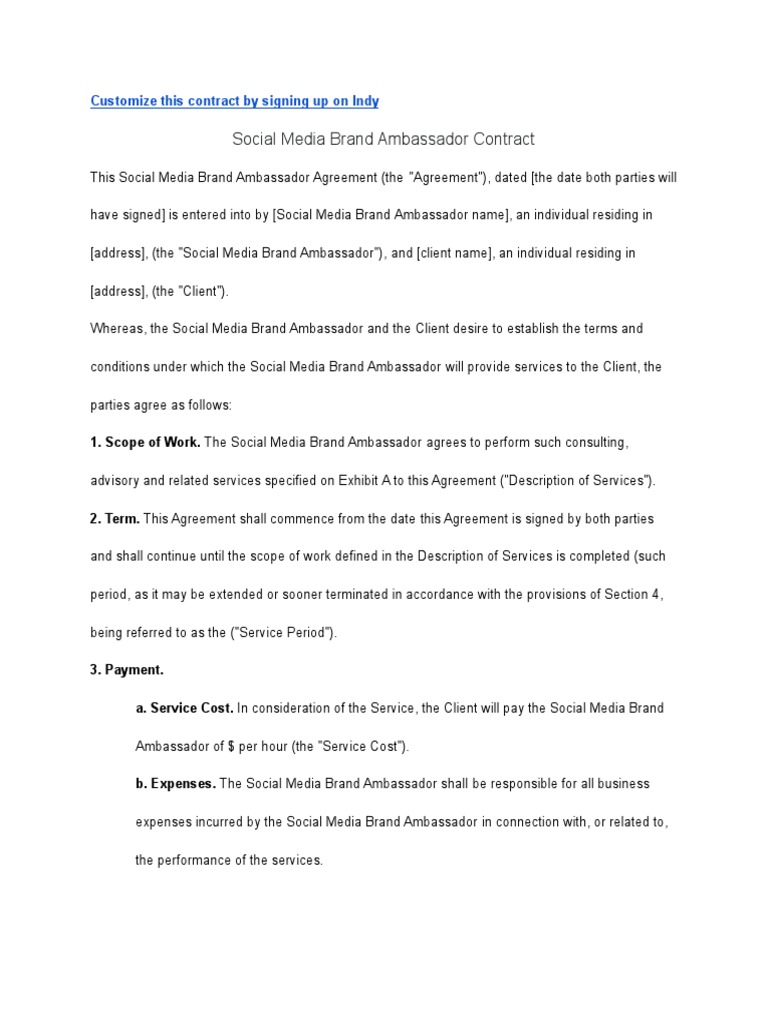 Here are some of the images for Social Media Brand Ambassador Contract Template that we found in our website database.