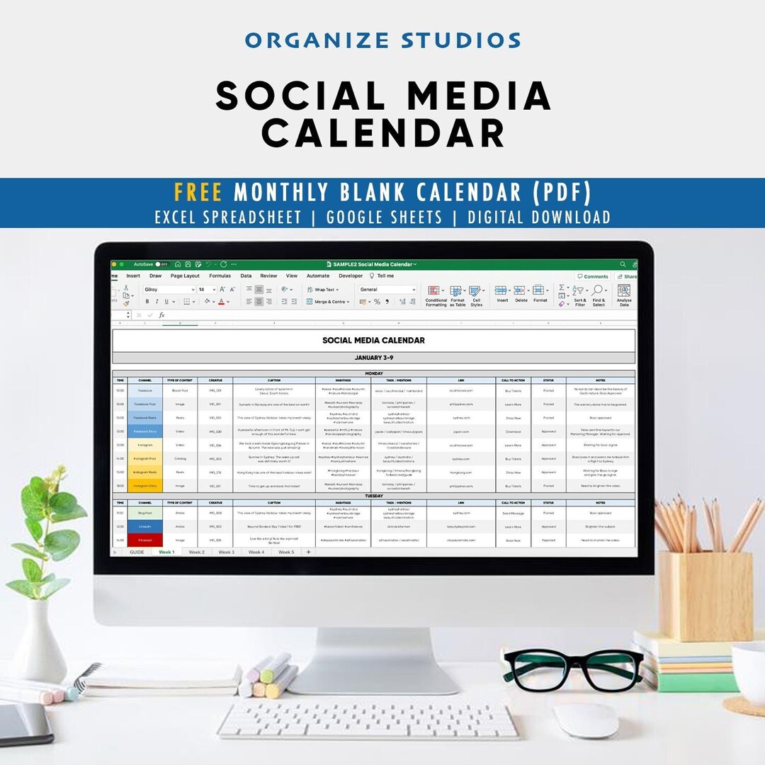 Social Media Content Calendar Excel Spreadsheet Digital Download Etsy