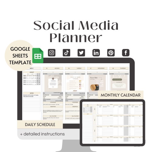 Social Media Planner Spreadsheet Content Calendar Etsy Australia