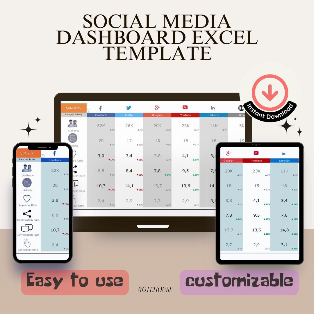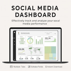 Social Media Dashboard Template: Excel Google Sheets (digital