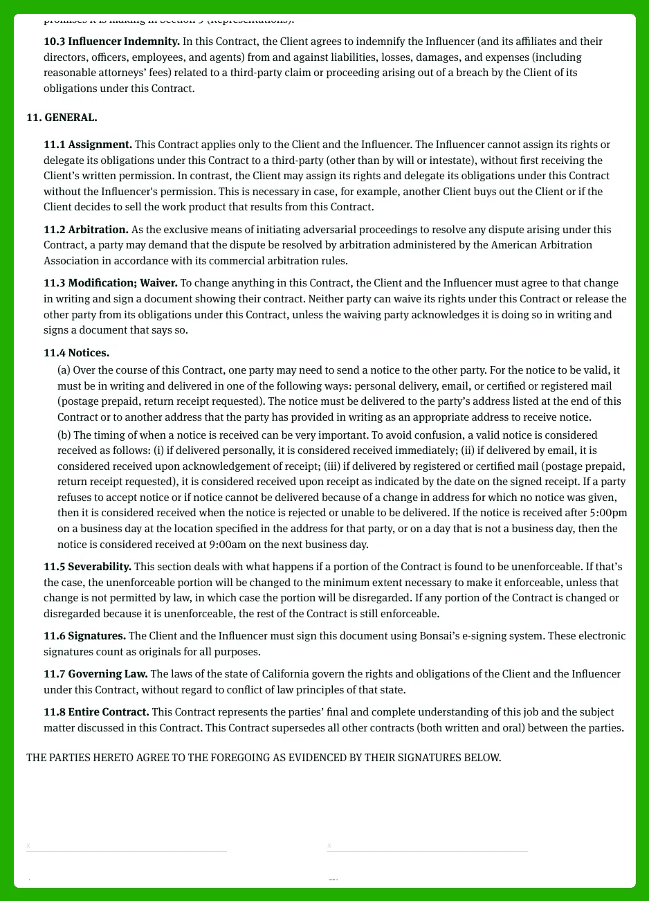 Influencer Collaboration Agreement Template 2023 Bonsai
