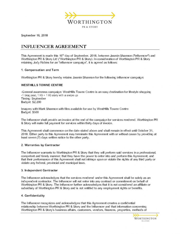 Sample Influencerblogger Agreement Template Free Download Social Media
