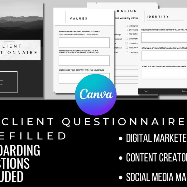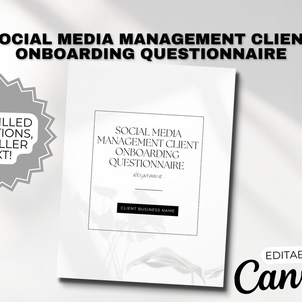 Social Media Management Client Onboarding Questionnaire Etsy