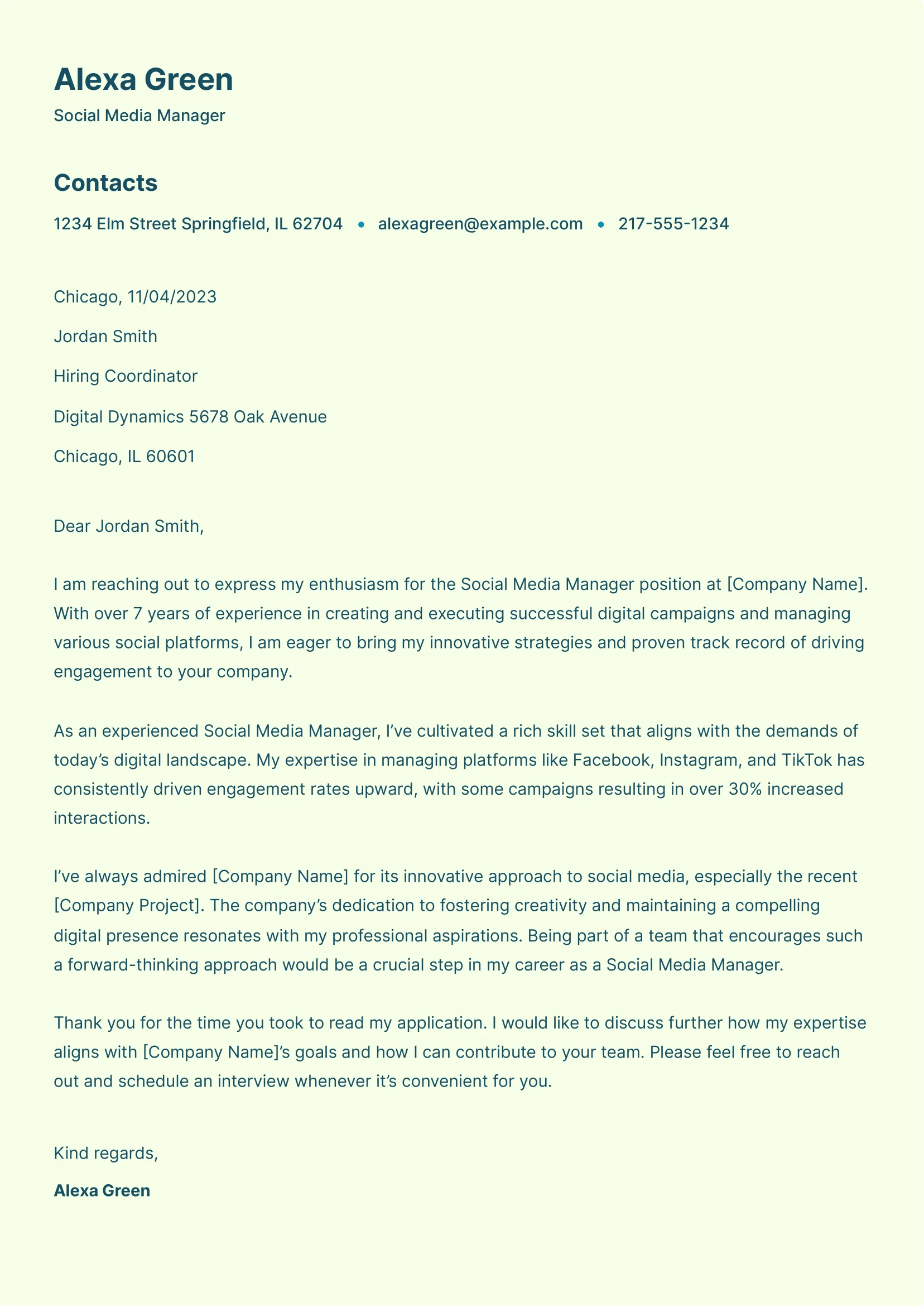 Social Media Manager Cover Letter Example for 2024 (Download Templates