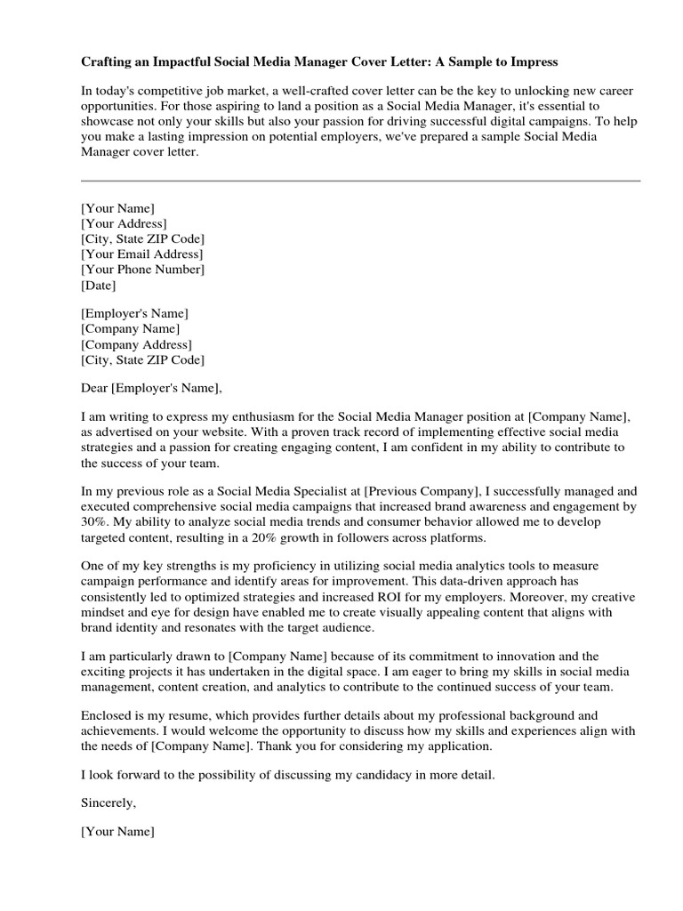 Crafting a Standout Social Media Manager Cover Letter Templates